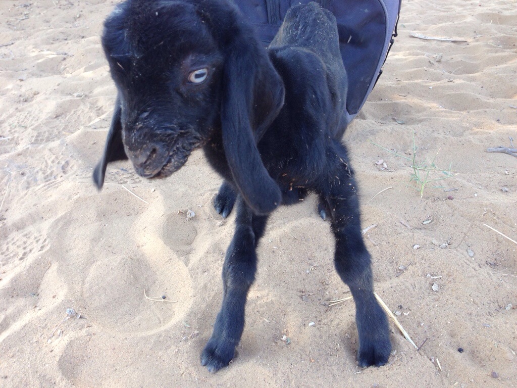 Ali brinquei com um cabritinho que havia nascido há uma hora, ainda tentando dar os primeiros passos com as perninhas tronchas.