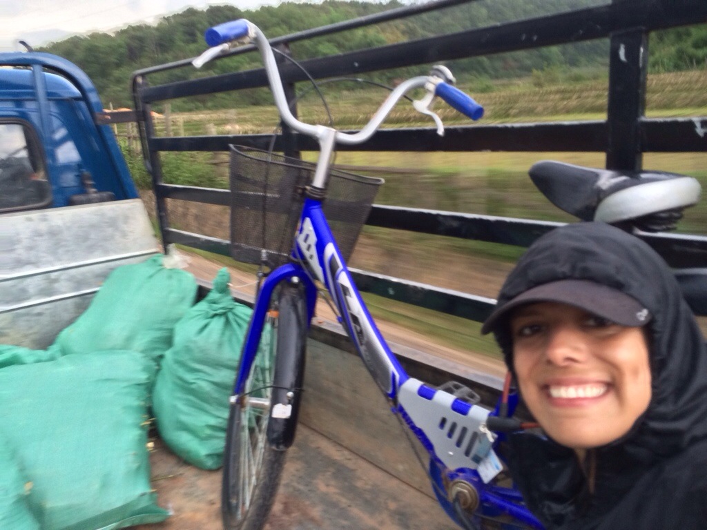 A chinesa do grupo consegue parar uma caminhonete que passava pela estrada, felizmente dirigida por chineses (eles estão construindo uma hidrelétrica na região). Segundos depois, descolamos carona na carroceria. Chacoalhamos uma hora na lama, que ficou toda na cara e na roupa. Do suposto ônibus nunca tivemos notícia. Mas deu tudo certo.