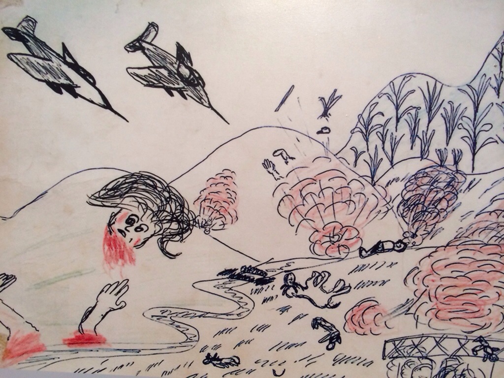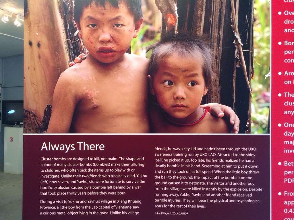 Exposições e documentários lembram que explosivos hibernantes ainda matam e aleijam, alguns casos por acidente, outros porque miseráveis procuram metal para vender a preço de ouro. O banco da pousada, a cerca do restaurante, o barco, são cascas de bombas adaptadas. A moda local tem fortes referências militares (demorou até entender que aqueles camuflados na rua eram civis). O prazer de explorar a deslumbrante natureza vira certa apreensão quando uma equipe anti-bomba aparece para limpar a área. Dá um nó na garganta ver enormes buracos redondos enfiados entre campos verdejantes e imaginar como aquilo foi parar ali. Se tinha alguma casa, se alguém morreu. Se o cenário parecia com os desenhos hoje expostos no museu, cheios de tinta vermelha e de cabeças degoladas.